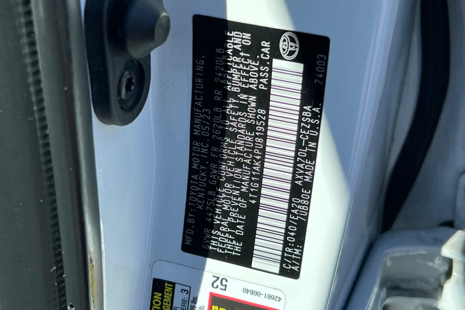 - VIN : 4T1G11AK4PU819528