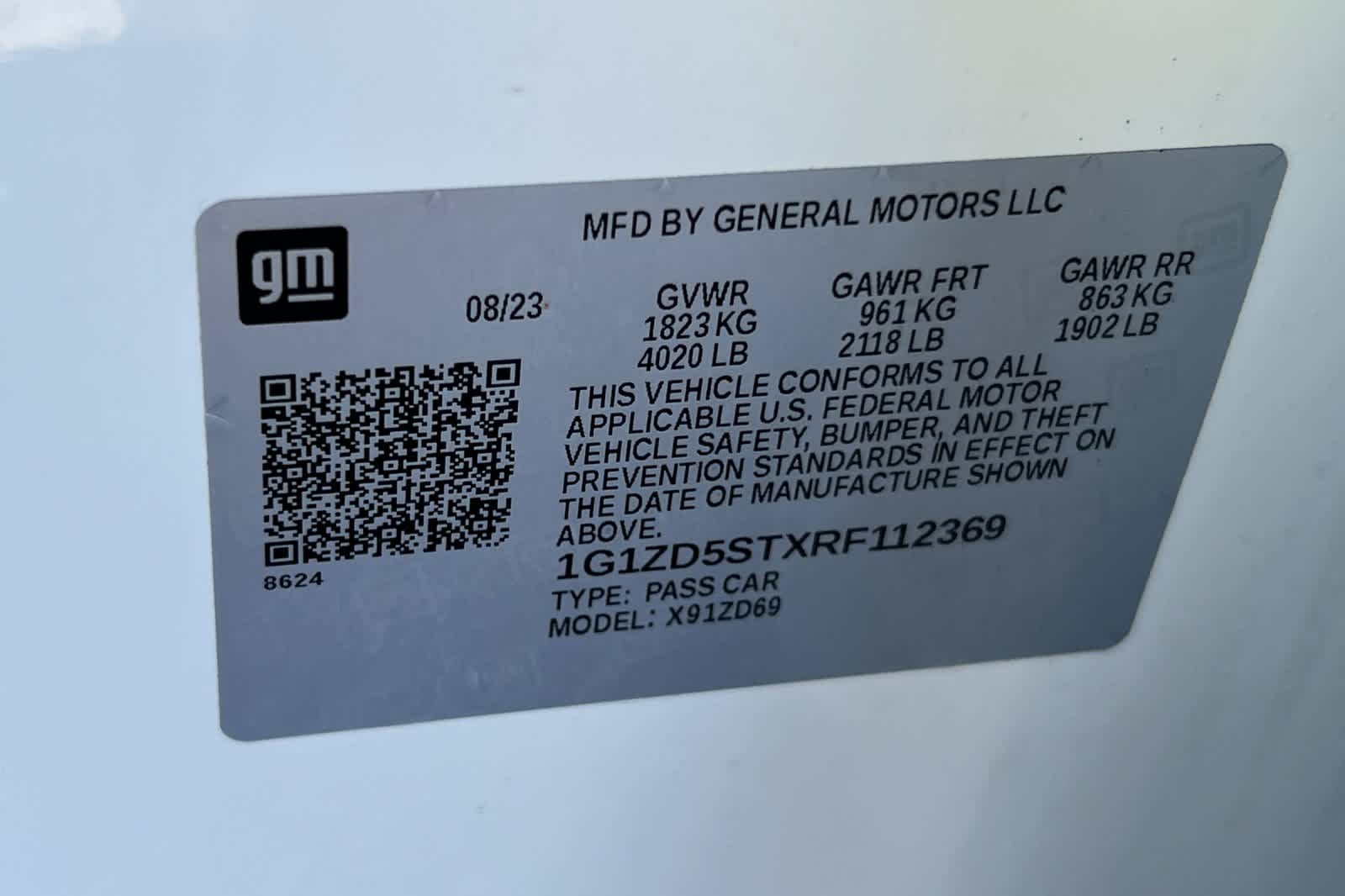 - VIN : 1G1ZD5STXRF112369