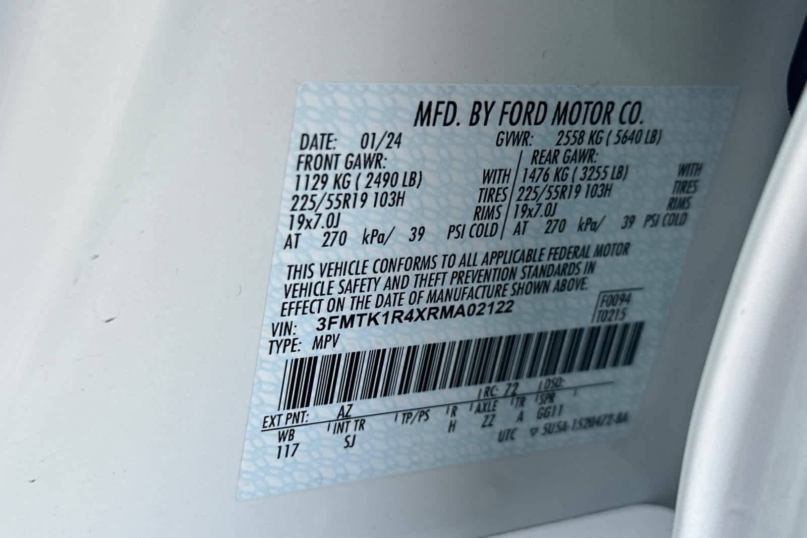 - VIN : 3FMTK1R4XRMA02122