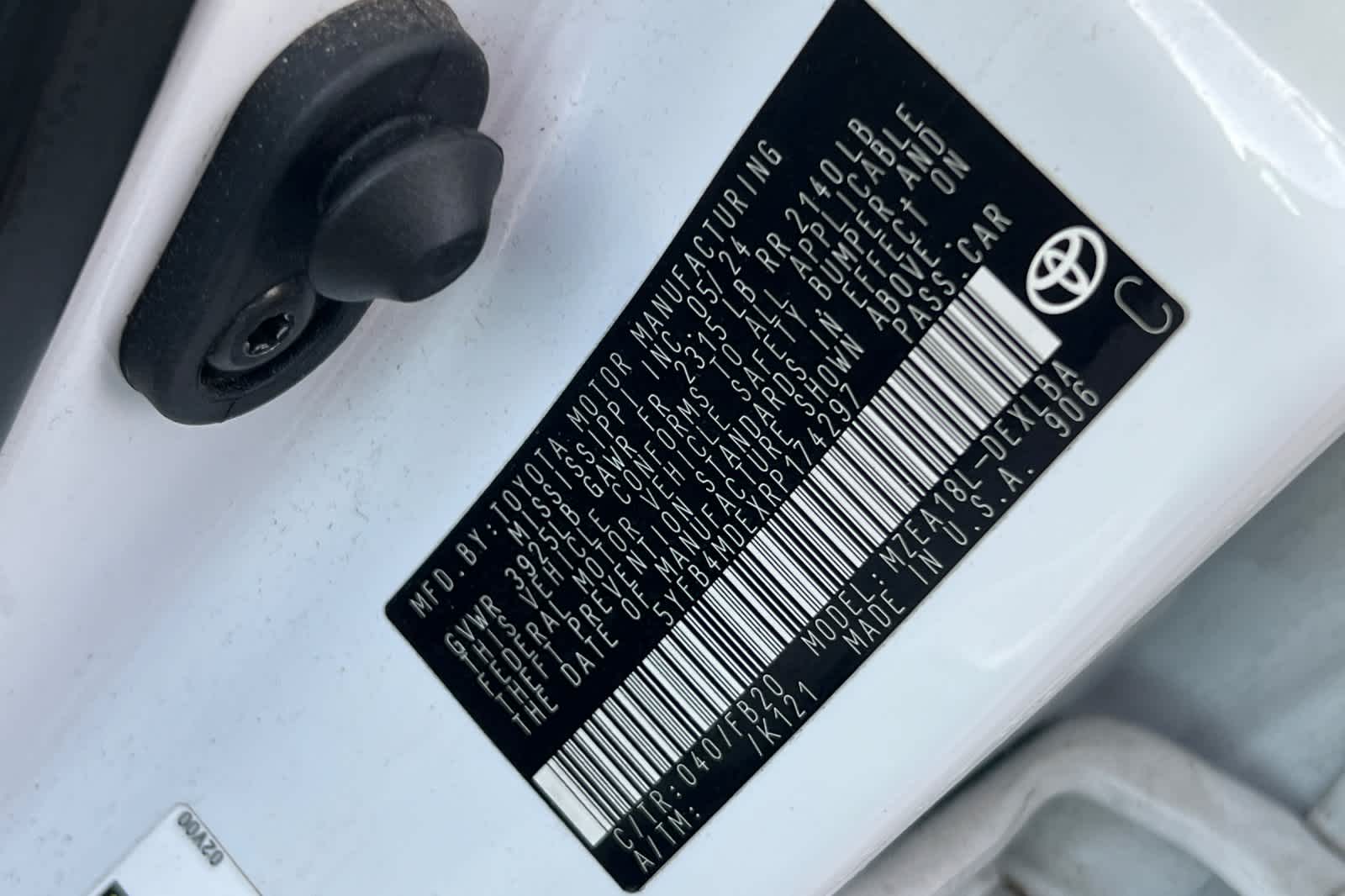 - VIN : 5YFB4MDEXRP174297