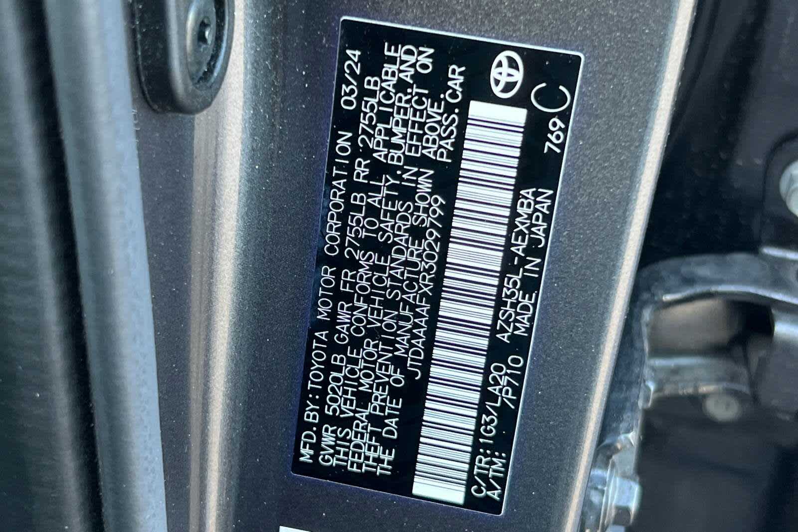 - VIN : JTDAAAAFXR3029799