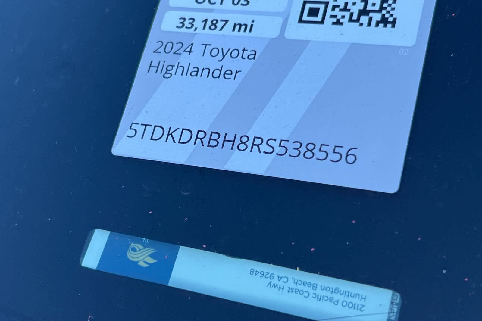 2024 Toyota Highlander XLE AWD 8-Speed Automatic 2.4L I4 PDI Turbocharged DOHC 16V LEV3-SULEV30 265hp AWD, ABS brakes, Active Cruise Control, Alloy wheels, Electronic Stability Control, Front dual zone A/C, Heated door mirrors, Heated Front Bucket Seats, Heated front seats, Illuminated entry, Low tire pressure warning, Power Liftgate, Power moonroof, Remote keyless entry, Traction control.